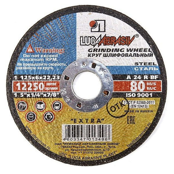Диск шлифовальный по металлу Луга 125х22х6 мм — предназначен для зачистки деталей и конструкций из различных марок сталей, сварных швов. Устанавливается на шлифмашину угловую.