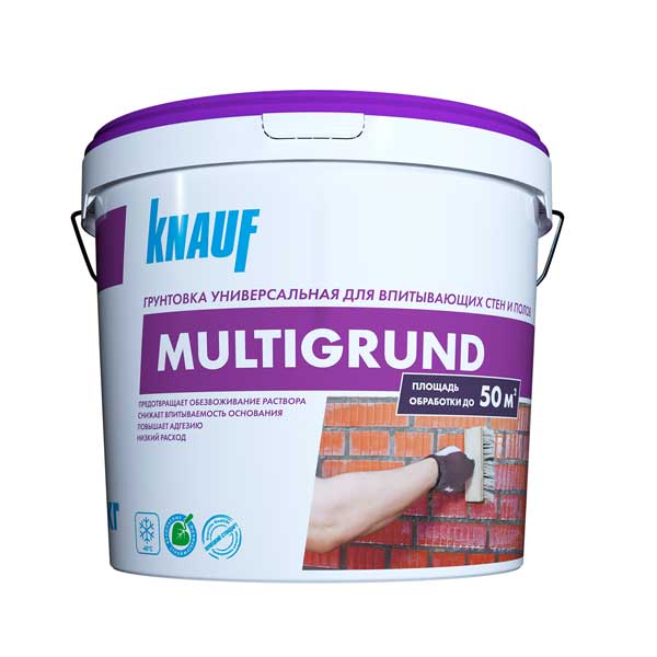 КНАУФ-Мультигрунд, в фасовке 5 кг — это грунтовка для впитывающих оснований, готовая к применению, быстросохнущая, паропроницаемая, на основе полимерной дисперсии. Предназначена для обработки поверхностей внутри и снаружи помещений: газо-и пенобетона, керамического и силикатного кирпича, керамзито- и шлакоблоков, гипсовых и цементных штукатурок; бетонной, цементной и гипсовой стяжки. Эффективно снижает и регулирует впитывающую способность основания, способствует равномерному схватыванию раствора гипсовых и цементных смесей.